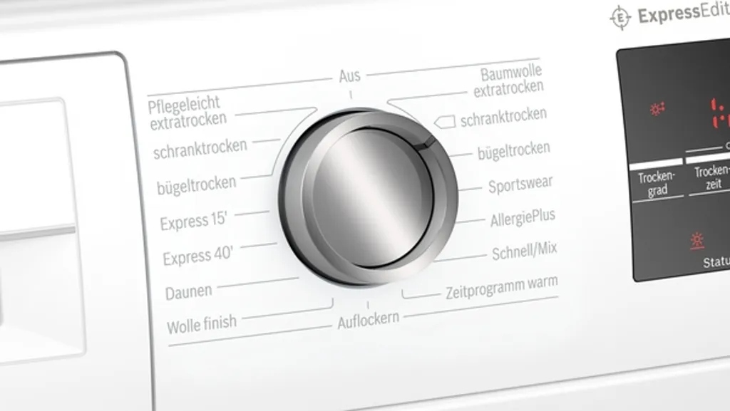 Siemens IQ500 WT45R4A1, Freistehend, Frontlader, Hitzepumpe, Weiß, Tasten, Drehregler, Rechts