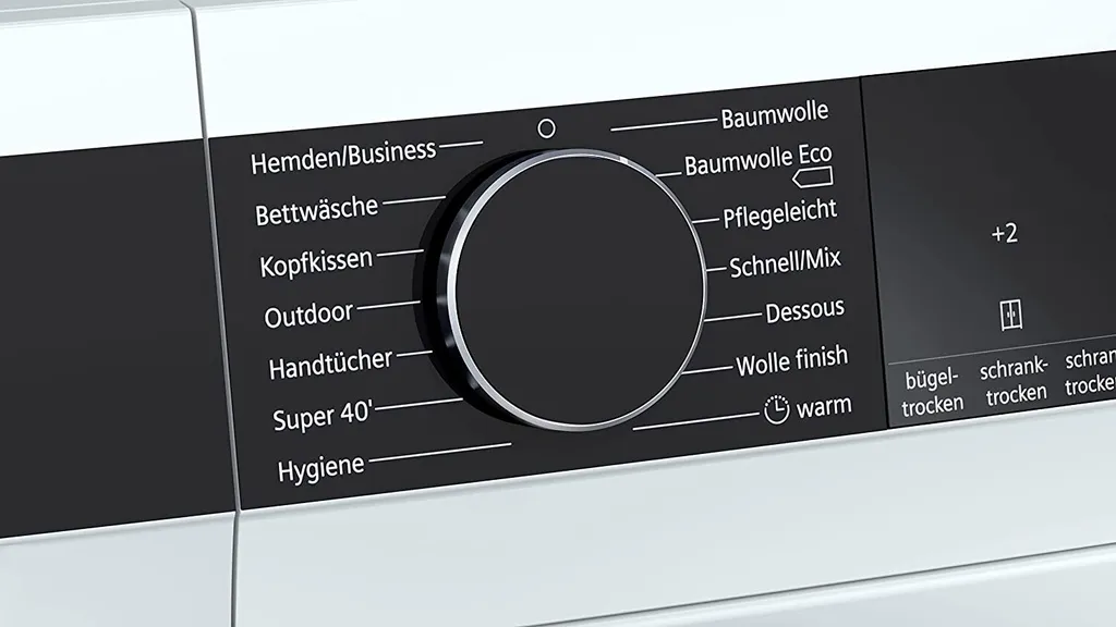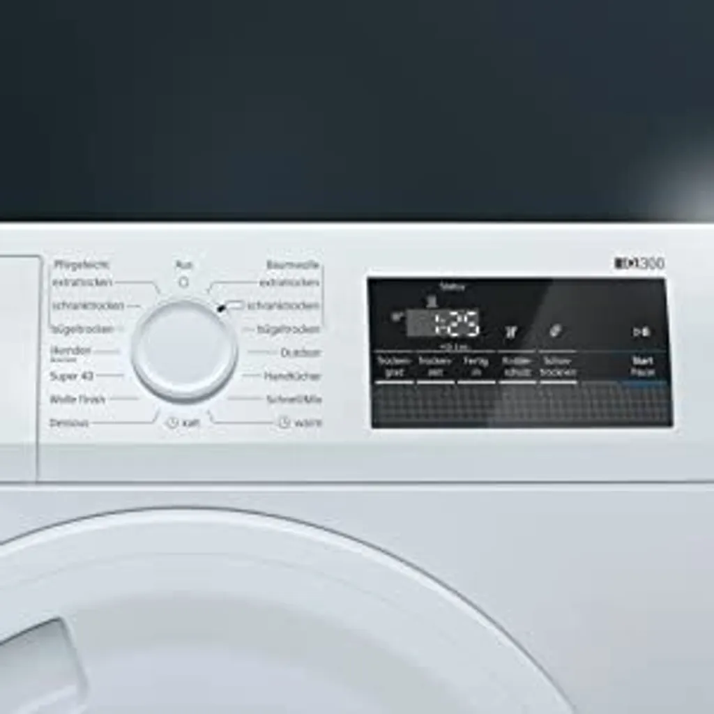 Siemens IQ500 WT45R4A1, Freistehend, Frontlader, Hitzepumpe, Weiß, Tasten, Drehregler, Rechts